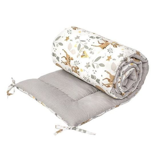 Gnezdece zagotavlja zaščito in prijeten zaslon za dojenčka v posteljici, zaobljeni konci, všiti trakovi blaga omogočajo pritrditev na posteljico, primerno za posteljice različnih velikosti.