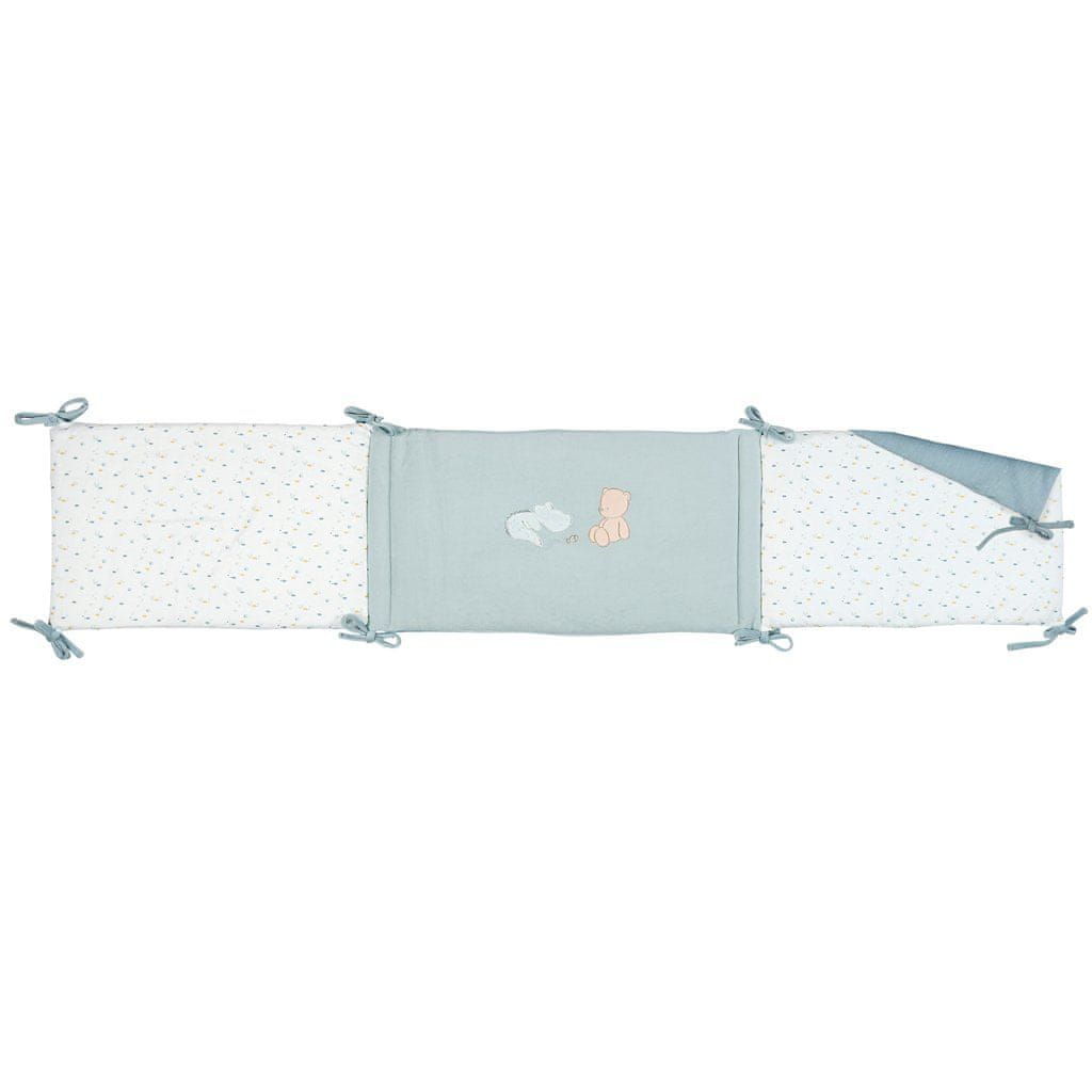 Ta posteljna pregrinjala ustvarijo mirno in prijetno vzdušje pred spanjem. Mehka oblazinjena tkanina preprečuje, da bi se dojenčki in malčki med spanjem udarjali v posteljico. Izbirate lahko med dvema stranicama z različnimi barvami in potiski ter tako ustvarite raznolike in individualne kombinacije.