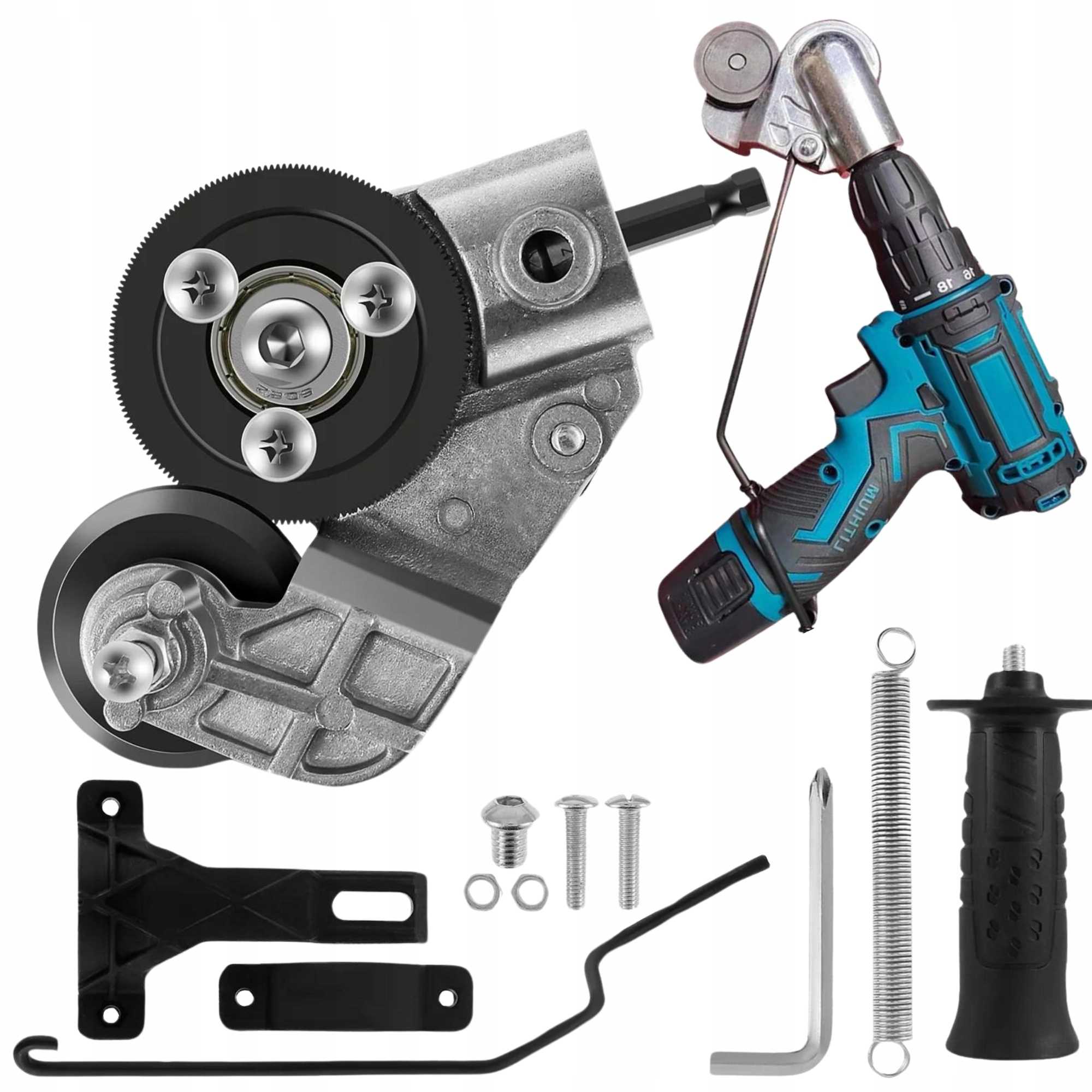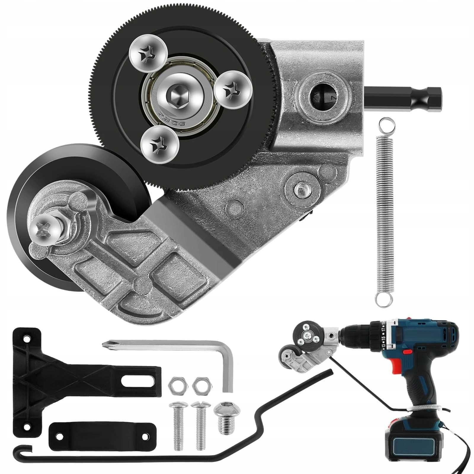 Priključek za rezanje pločevine za vrtalnike je orodje, ki omogoča natančno rezanje pločevine. Sestavljen je iz dveh delov: držala, ki se pritrdi na vrtalnik, in rezalnega rezila, ki reže pločevino.