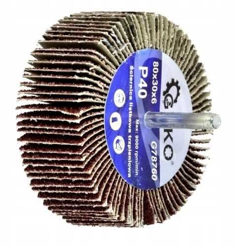 Lamelni brusni disk s steblom P40 80×30×6. Izdelek uglednega proizvajalca in distributerja orodij. Brusilni disk je izdelan iz lamelic iz bombažnih vlaken z abrazivom iz aluminijevega oksida, vezanim s sintetično smolo. Lamele so trajno pritrjene na steblo s premerom 6 mm. Idealen za brušenje lesa, kovine, plastike … Uporaba – za svedre.