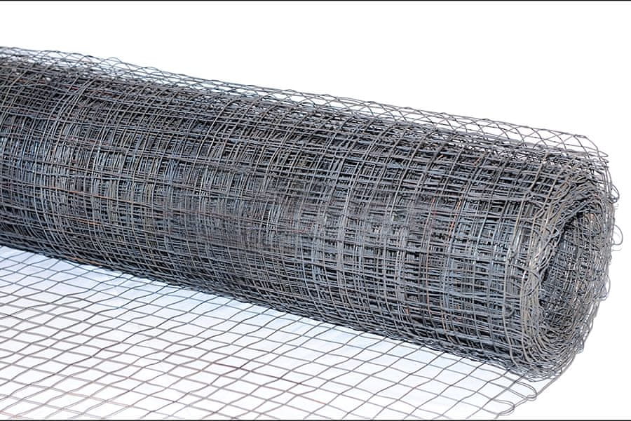 So štvorcovými okami, tkané v plátnovej väzbe z holého žíhaného drôtu,