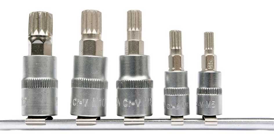 Kromirani nastavki so izdelani iz jekla CrV6150, držala pa so iz jekla AISI S2 in ponikljana. Komplet vsebuje 5 kosov. Nepogrešljivo orodje v vsaki avtomobilski in mehanski delavnici.