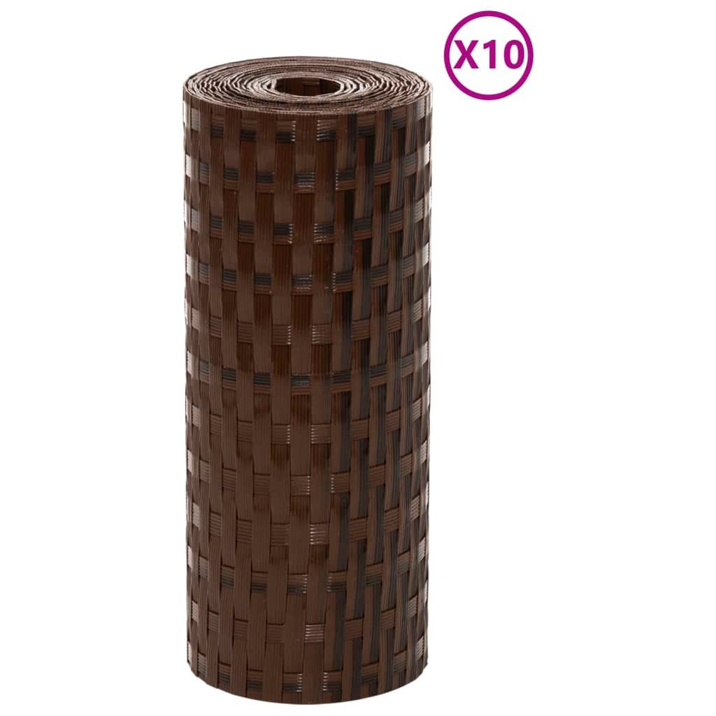 Vidaxl vidaXL Balkonske pregrade, 10 kosov, rjave in črne, 255 x 19 cm PE ratan
