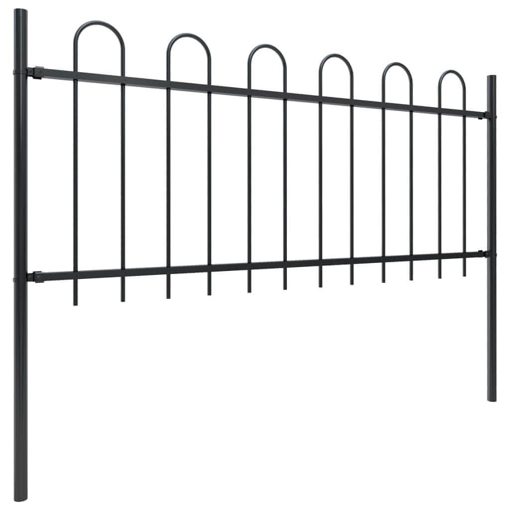 Vidaxl vidaXL Vrtna ograja z zgornjim obročem, jeklo, 359 x 80 cm, črna