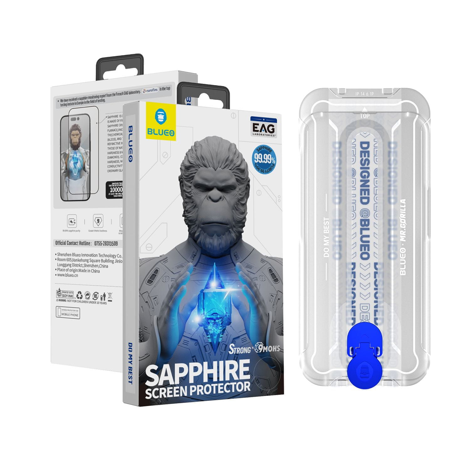 Blueo Sapphire Screen Protector With Applicator zaščitno steklo z okvirjem za namestitev
