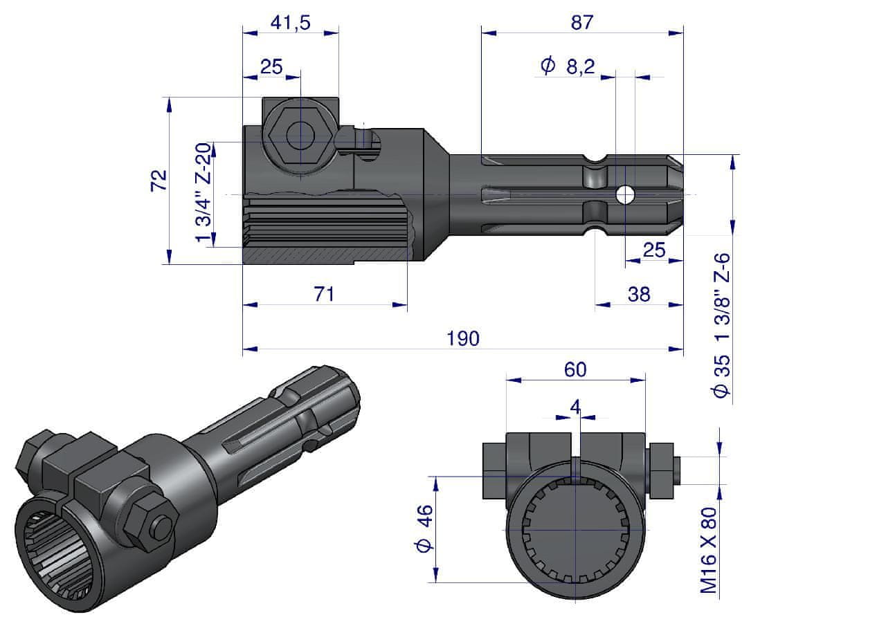 Adapter redukcije za vijak 1 3/4"" 20 ključev za gred 1 3/8"" 6 ključev WARYŃSKI Celoten opis