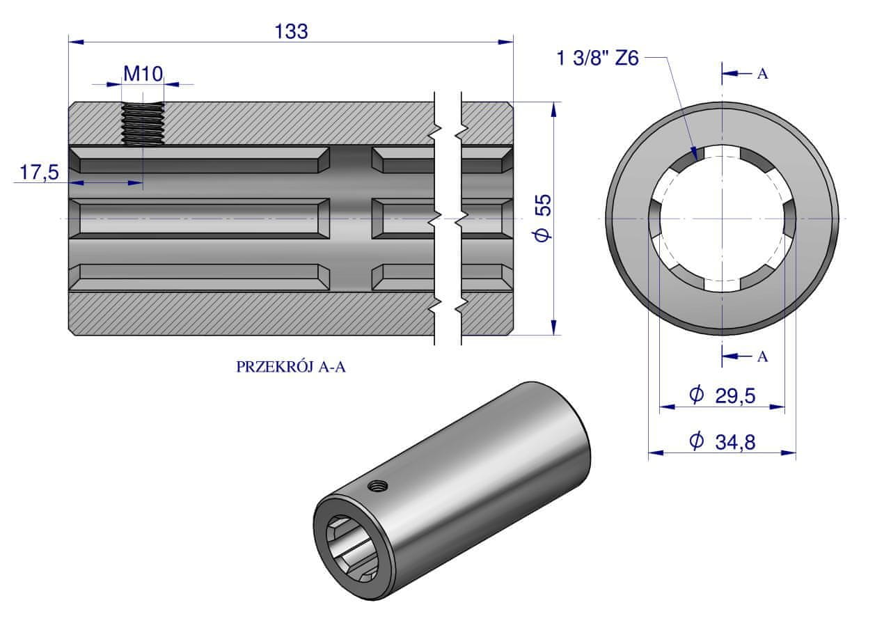 Puša, kardanska priključna rezkana 133 mm Z6 – 1 3/8, Waryński Celoten opis