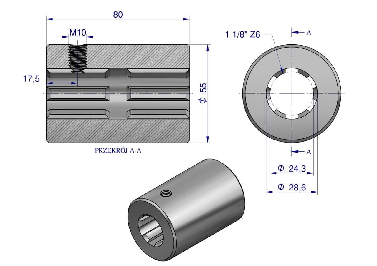 Puša, kardanska priključna rezkana 80 mm Z6 – 1 1/8, Waryński Celoten opis