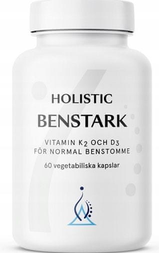 Holistični Benstark je prehransko dopolnilo, ki vsebuje vitamine in minerale. Vitamina K2, D3 ter minerale: bor, magnezij, cink in mangan.