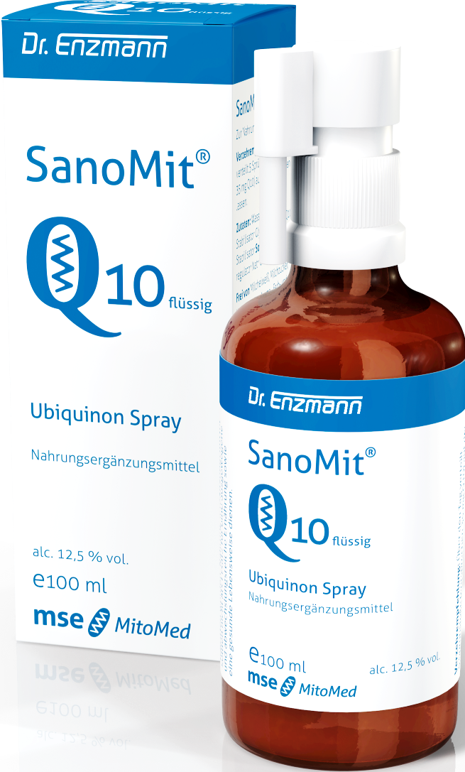 - SANOMIT®Q10 direkt vsebuje naravno čisti koencim Q10 – ki ustreza snovi, ki jo proizvaja človeško telo.