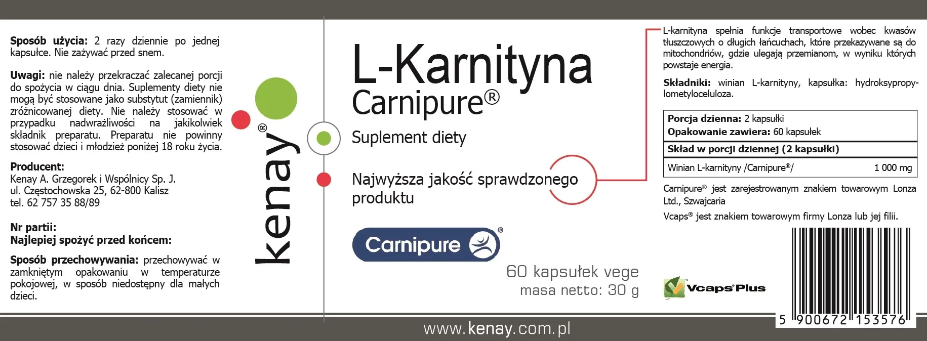 shumee L-karnitin Carnipure KenayAG - 60 kapsul ____ Kakovost Švica