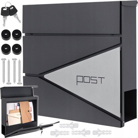 Odkrijte vrhunski poštni nabiralnik, ki združuje eleganco, funkcionalnost in trajnost. Moderni poštni nabiralnik z režo za časopise v antracit barvi in inox detajli, model X1, je popolna izbira za sodoben dom ali poslovno zgradbo.