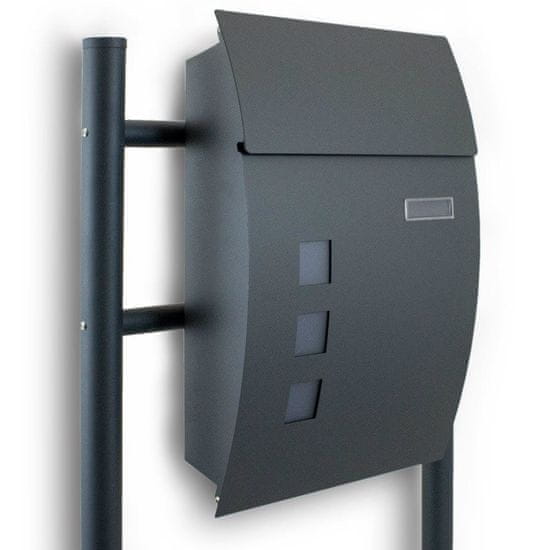 PISEMNI NABALNIK S STOJALOMI Enoten in moderen poštni nabiralnik na stojalu je odporen na atmosferske padavine. Nabiralnik je izdelan iz nerjavečega jekla, debelina stene pa je približno 0,8 mm. Škatla ima na zadnji strani luknje, ki omogočajo enostavno namestitev na stebre. Dizajnerski videz bo zagotovil nego in stil na vaši posesti. Lastnosti izdelka: moderen videz, stabilno stojalo, odporno na atmosferske padavine, visoka kakovost izdelave, enostavna in hitra montaža. Tehnični podatki: Mere (D / Š / G): 50 cm x 124 cm x 14 cm, mere nabiralnika (D / Š / G): 32 cm x 46 cm x 10 cm, vgradne mere (D / Š): 30 cm x 4,5 cm, višina podstavka: 1 , 20 m, Premer baze: 4 cm, Material: kovina, prah, Teža: 5,00 kg, Barva: temno siva V kompletu: – 1× nabiralnik, – 2× stojalo, – 2× prečke, – 2× ključ, – montažni material