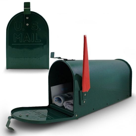 Zeleni nabiralnik v ameriškem slogu z rdečo zastavo Celoten opis