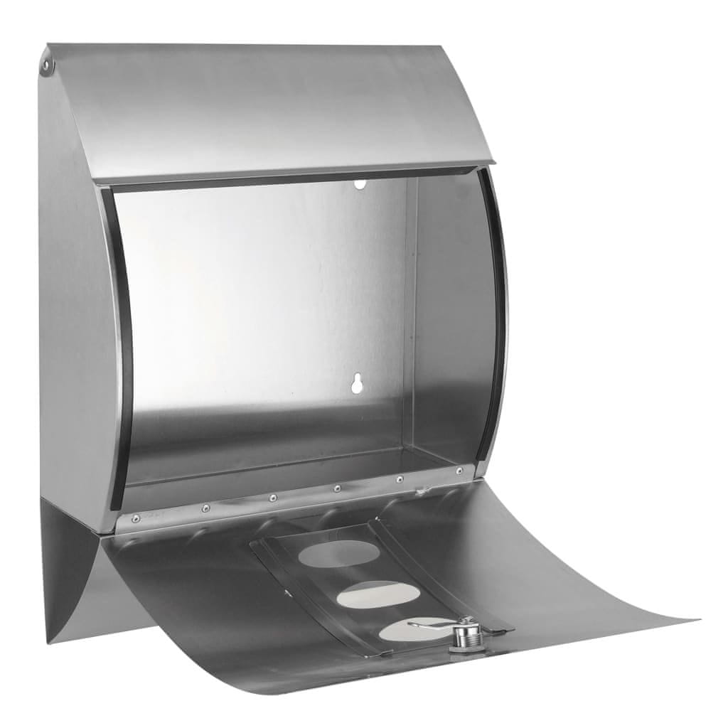 Na vremenske vplive odporno lakirano nerjaveče jeklo daje temu poštnemu nabiralniku moderen, prefinjen in vrhunski videz, zato je popoln za uporabo na prostem in zahteva le malo vzdrževanja. Nabiralnik ima tudi držalo za časopis ter zgornjo režo z loputo za pisma velikosti A4. Ta loputa vsebino v nabiralniku varuje pred dežjem in skrbi za varno shranjevanje.
