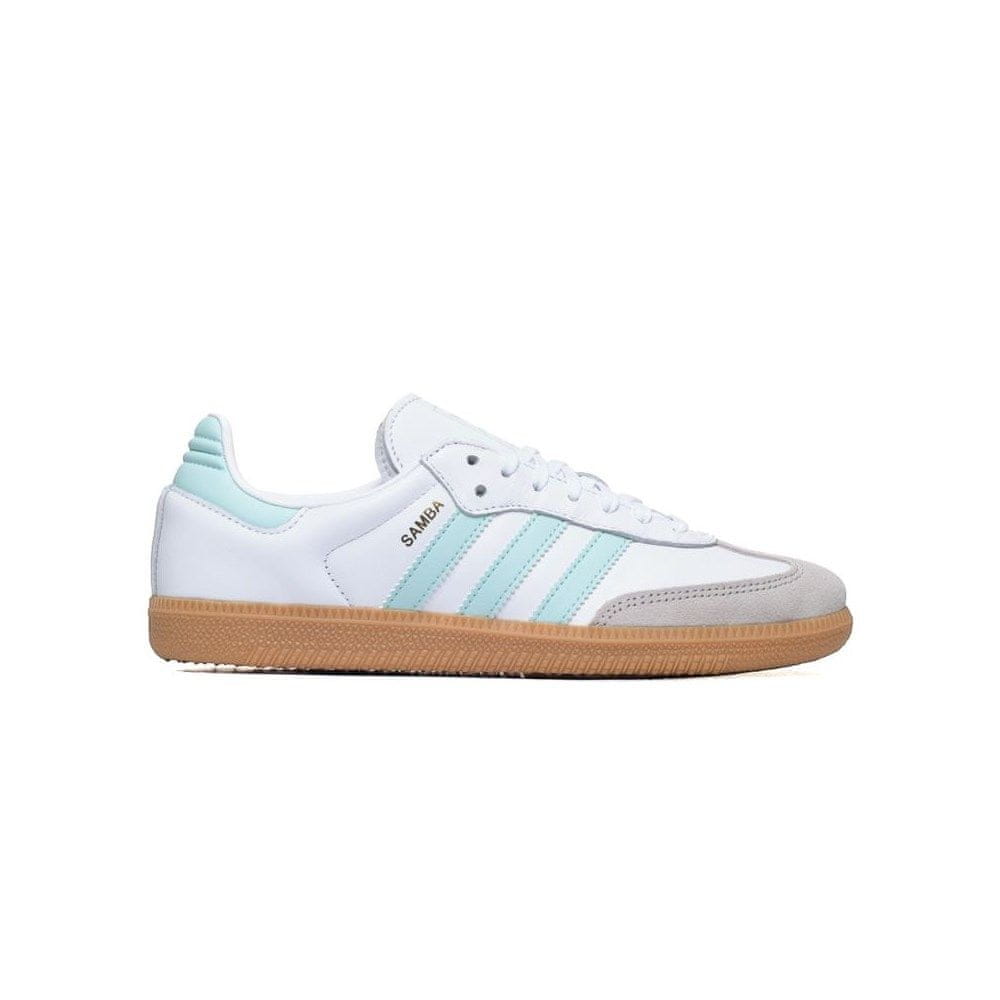 Proizvajalec: ADIDAS Model:  SAMBA OG J JP5481 Barva: bela, turkizna, medena Material: pravo usnje, sintetični material, tekstil Zapenjanje z vezalkami. Gumiran podplat zagotavlja oprijem. Nova, originalna obutev s kompletom etiket proizvajalca, pakirana v škatli. Celoten opis