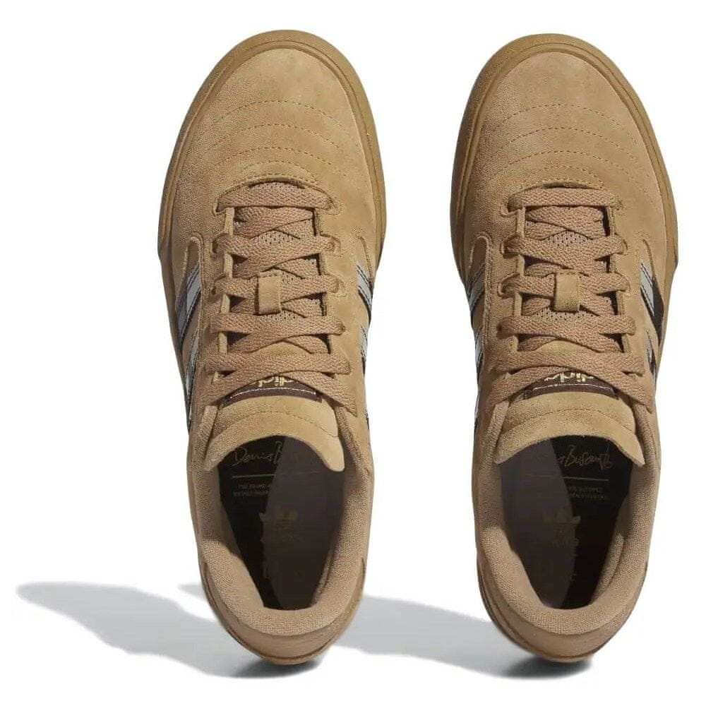 Dime, montrealska znamka rolkarskih čevljev, nadaljuje svoje dolgoletno partnerstvo z adidasom in daje nov preobrat ikoničnemu modelu Dennisa Busenitza. Adidas Busenitz je sveža različica klasike, ki združuje dediščino znamke z Dimeovim značilnim slogom. Ti čevlji imajo zgornji del iz semiša in so opremljeni z jezikom, vezalkami in podplatom iz vulkanizirane gume. Temno rjave tri črte dodajo subtilen lesk, zaradi česar so med gibanjem privlačne.