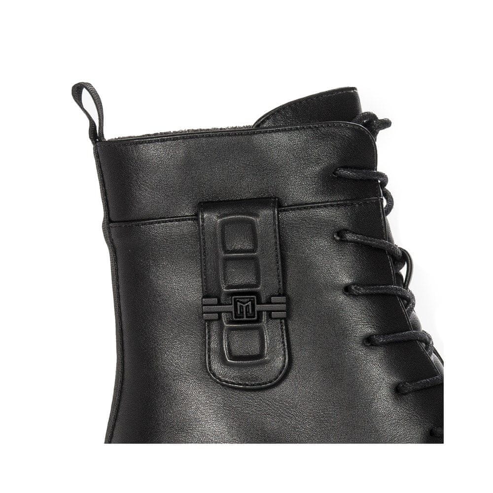 Filippo je blagovna znamka, katere kolekcije so zasnovane za elegantne ženske, ki želijo vedno izgledati najbolje, ne glede na priložnost. Predstavljamo vam najnovejši model ženskih delovnih škornjev te blagovne znamke za jesensko-zimsko sezono. Zgornji del je izdelan iz visokokakovostnega črnega eko usnja. Okrogla konica daje vašim prstom veliko svobode in omogoča udobno prileganje. Stranska zadrga na notranji strani omogoča enostavno menjavo čevljev. Vezalke omogočajo popolno prilagoditev zgornjega dela vašim potrebam. Mehka in udobna notranjost iz toplega flisa nežno ovije in greje vaša stopala ter zagotavlja občutek udobja. Ta model ima 6 cm peto. Idealen za obleke, krila in hlače. Širina, ki jo določa proizvajalec – G. Kakovost: I.