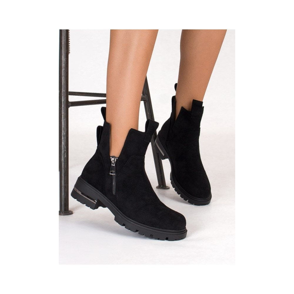 Klasični model gležnjarjev Filippo, ki se s svojo preprostostjo poda k vsakemu slogu. Zgornji del je izdelan iz visokokakovostnega semiša v črni barvi. Okrogla konica daje prstom veliko svobode in omogoča udobno namestitev. Stranska zadrga omogoča enostavno preobuvanje. Mehka in udobna notranjost iz toplega flisa nežno ovije in greje vaša stopala ter zagotavlja občutek udobja. Podplat iz materiala trapper odlično izolira vaša stopala od tal. Ti škornji so popolno dopolnilo k zimskemu videzu.