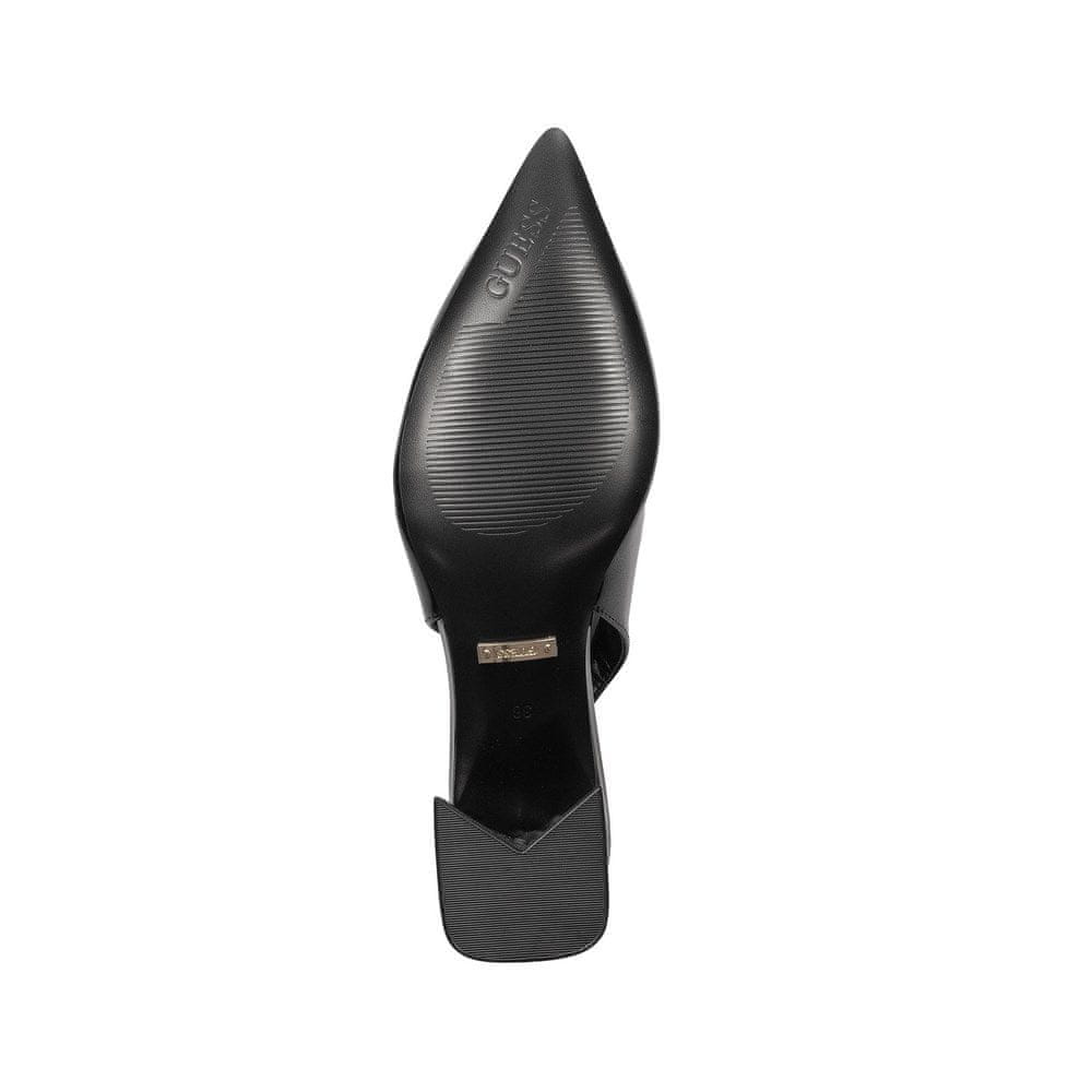 Ženski črni salonarji Guess so elegantna obutev, ki je popolna za vsakodnevno nošenje in posebne priložnosti. Klasična črna barva in lakirana usnjena prevleka dodata pridih šika, medtem ko koničasta konica vizualno zoži stopalo. Stabilna šestcentimetrska blok peta zagotavlja udobje in eleganco.