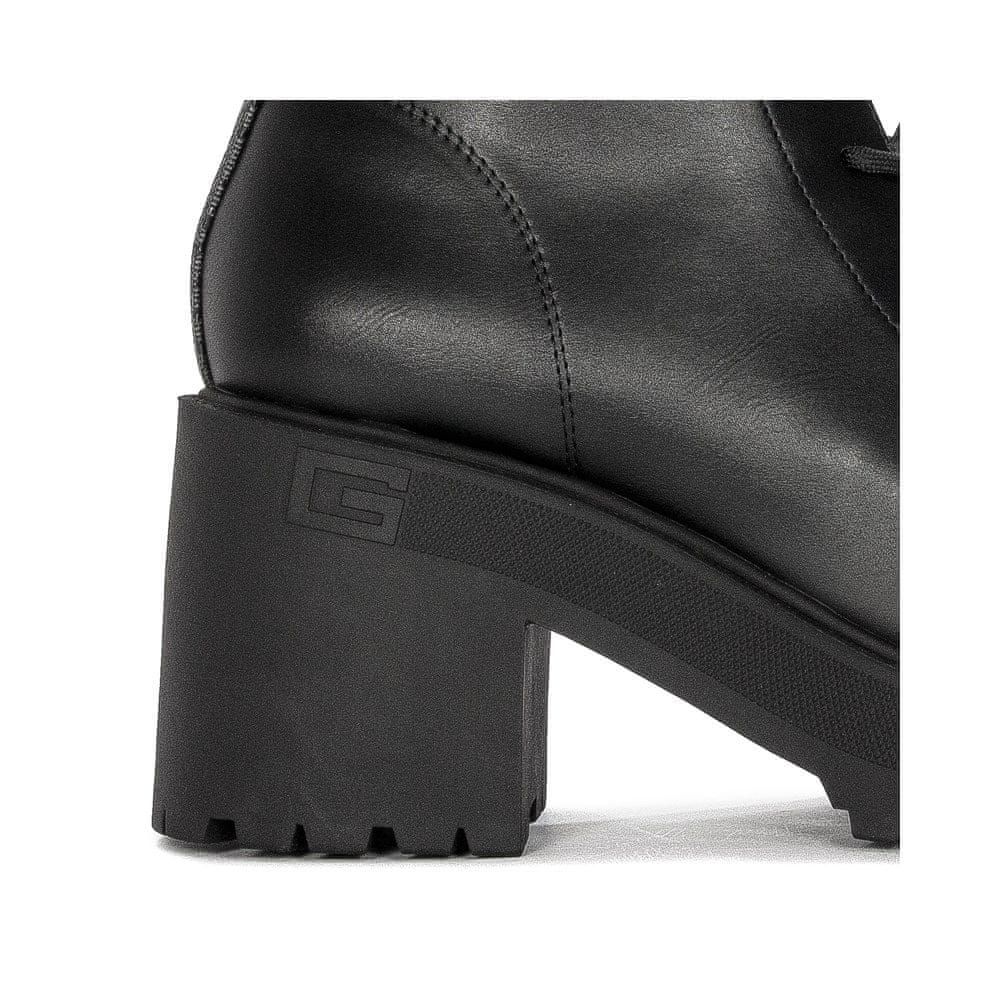 Elegantni in drzni ženski gležnjarji znamke Guess so absolutna must-have oprema! Namenjeni so samozavestnim ženskam, ki rade izstopajo in se odločajo za drzne sloge. Ta najnovejši model je izdelan iz črnega eko usnja. Podloga je iz mehke tkanine, vložek pa iz naravnega usnja. Zgornji del je vezalke in ima zadrgo za enostavno preobuvanje. Podplat je platforma s peto, ki meri 3 cm spredaj in 8 cm zadaj. To je neverjetno udobno in zagotavlja stabilnost celotne silhuete. Ti čevlji bodo nedvomno dopolnili številne sloge, jih naredili popolne ali pa jim dodali pridih ostrine.