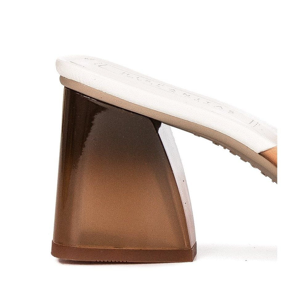Japonke so popolna rešitev za naša stopala, ko potrebujejo sprostitev. Pravilno nameščene zagotavljajo 100-odstotno udobje in priročnost. V naši spletni trgovini MIDIAMO predstavljamo najnovejšo ponudbo priznane španske blagovne znamke HISPANITAS – čudovite japonke s kvadratnim nosom. Zgornji del je izdelan iz kombinacije belega polnozrnatega usnja in dimljenega silikonskega materiala. Udoben, dobro oblikovan podplat z vložkom iz pravega usnja zagotavlja zelo udoben občutek. Podloga je iz visokokakovostnega materiala. Čudovita trapezoidna peta se odlično dopolnjuje z zgornjim delom in lepo podaljša nogo. To so resnično lepi in edinstveni kosi za ženske, ki cenijo moden in udoben dizajn.
