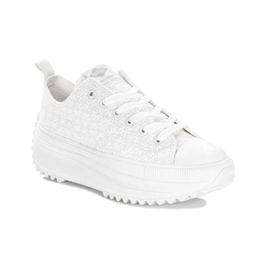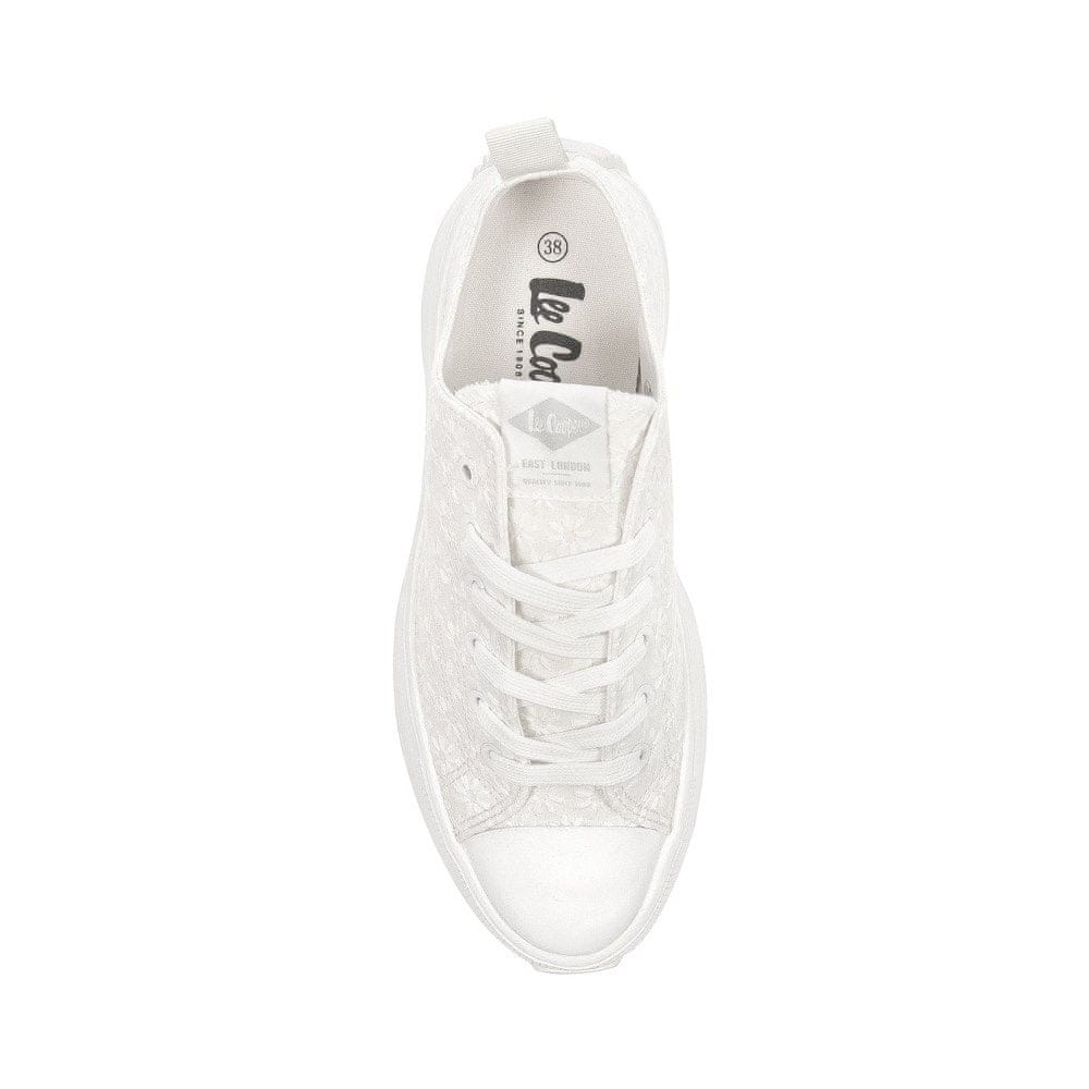 Moderni in elegantni ženski čevlji s platformo znamke Lee Cooper so odlična izbira za sezono pomlad-poletje 2025. Klasična bela barva jim daje univerzalen značaj, primeren tako za šport kot za sproščen slog. Zgornji del iz blaga zagotavlja zračnost, mehak vložek in podloga iz blaga pa zagotavljata celodnevno udobje. 5,5 cm visok podplat s platformo doda sodoben videz in subtilno podaljša silhueto, hkrati pa zagotavlja stabilnost. Zapenjanje z vezalkami omogoča popolno prileganje. To je odlična izbira za ženske, ki cenijo kombinacijo udobja in urbanega stila!