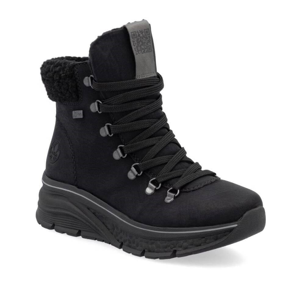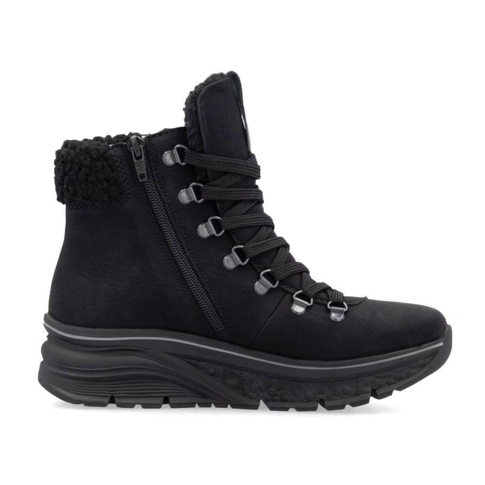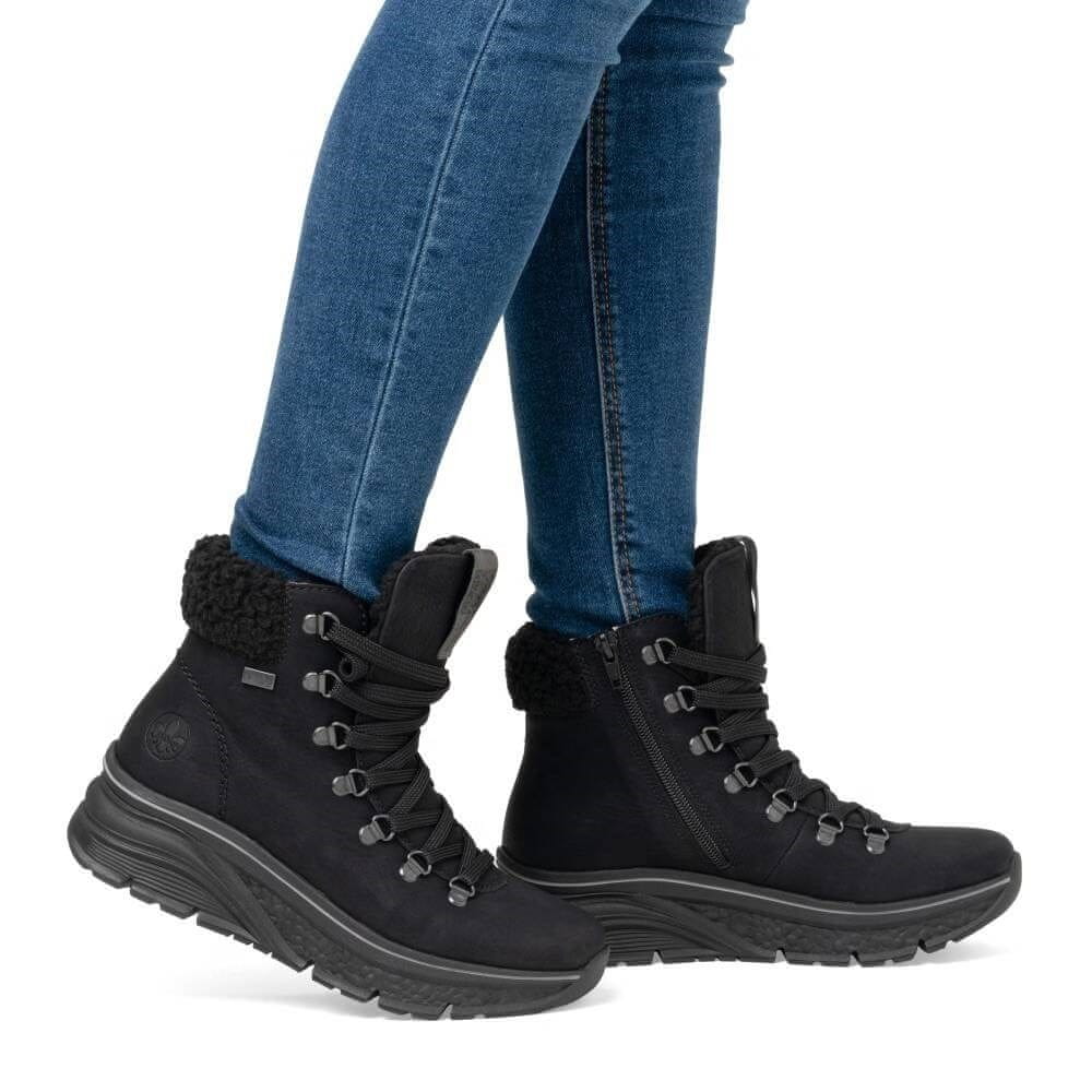 Najnovejša ponudba blagovne znamke Rieker je neverjetno udoben par izoliranih ženskih gležnjarjev. Zgornji del je izdelan iz eko usnja, ki spominja na nubuk, v barvi „črne“. Notranjost teh škornjev je izdelana iz sintetične ovčje kože, ki zagotavlja udobje in toploto v zimskih dneh. Celoten opis