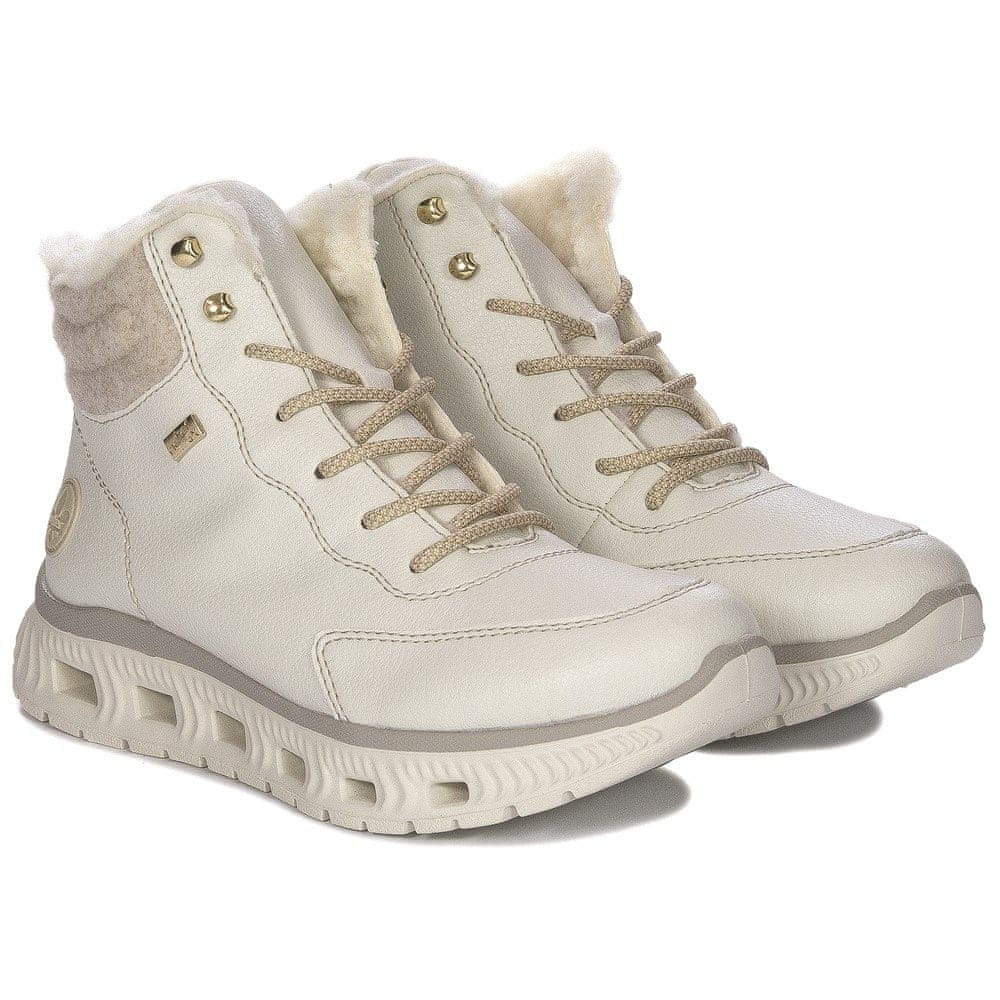 Nova ponudba blagovne znamke Rieker so izjemno udobni ženski izolirani gležnjarji. Zgornji del je izdelan iz visokokakovostnega materiala v barvi „bela“. Notranjost teh škornjev je izdelana iz sintetične ovčje kože, ki zagotavlja udobje in toploto v zimskih dneh. Celoten opis