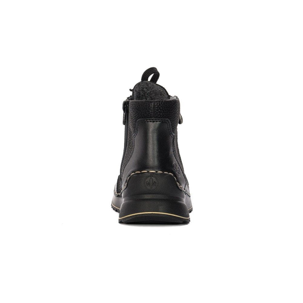 Najnovejša ponudba znamke Rieker je neverjetno udoben in čudovit par ženskih izoliranih gležnjarjev. Zgornji del je izdelan iz visokokakovostnega črnega materiala. Zadrga na notranji strani zgornjega dela omogoča enostavno menjavo obuvala. Zadrga na zunanji strani je dekorativna in se ne zapenja. Celoten opis