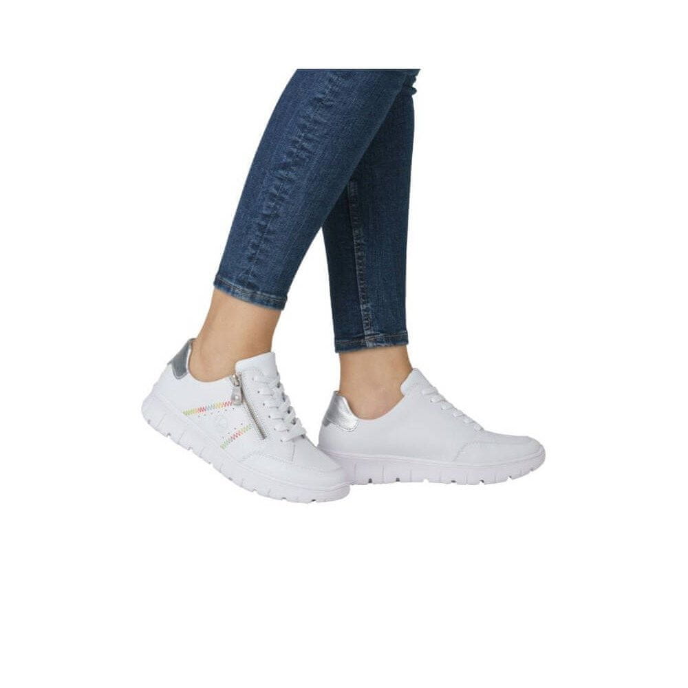 Ženski superge iz najnovejše kolekcije priznane blagovne znamke Rieker, ki bodo zagotovo všeč ljubiteljicam udobne in športne obutve. Zgornji del je izdelan iz kombinacije naravnega in eko usnja v beli barvi z barvitimi šivi in srebrnim podplatom. Ti superge niso le udobne, ampak tudi izjemno modne. Celoten opis