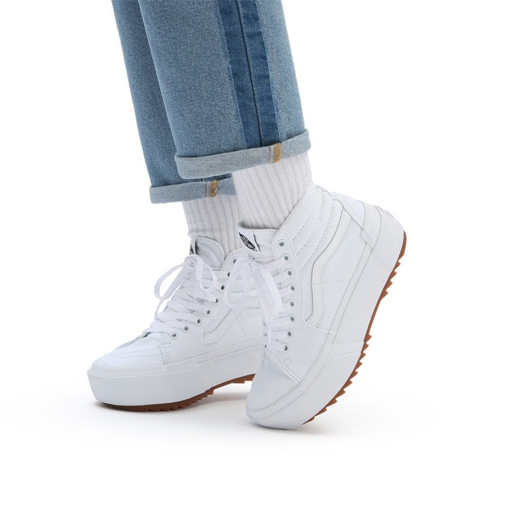 Modni in prosti čas – tako bi lahko opisali univerzalne čevlje Vans UA SK8HI. Primerni so za jeans in manj formalna oblačila, čeprav današnji stajling vključuje tudi kombiniranje takšnih čevljev s športno jakno. Celoten opis