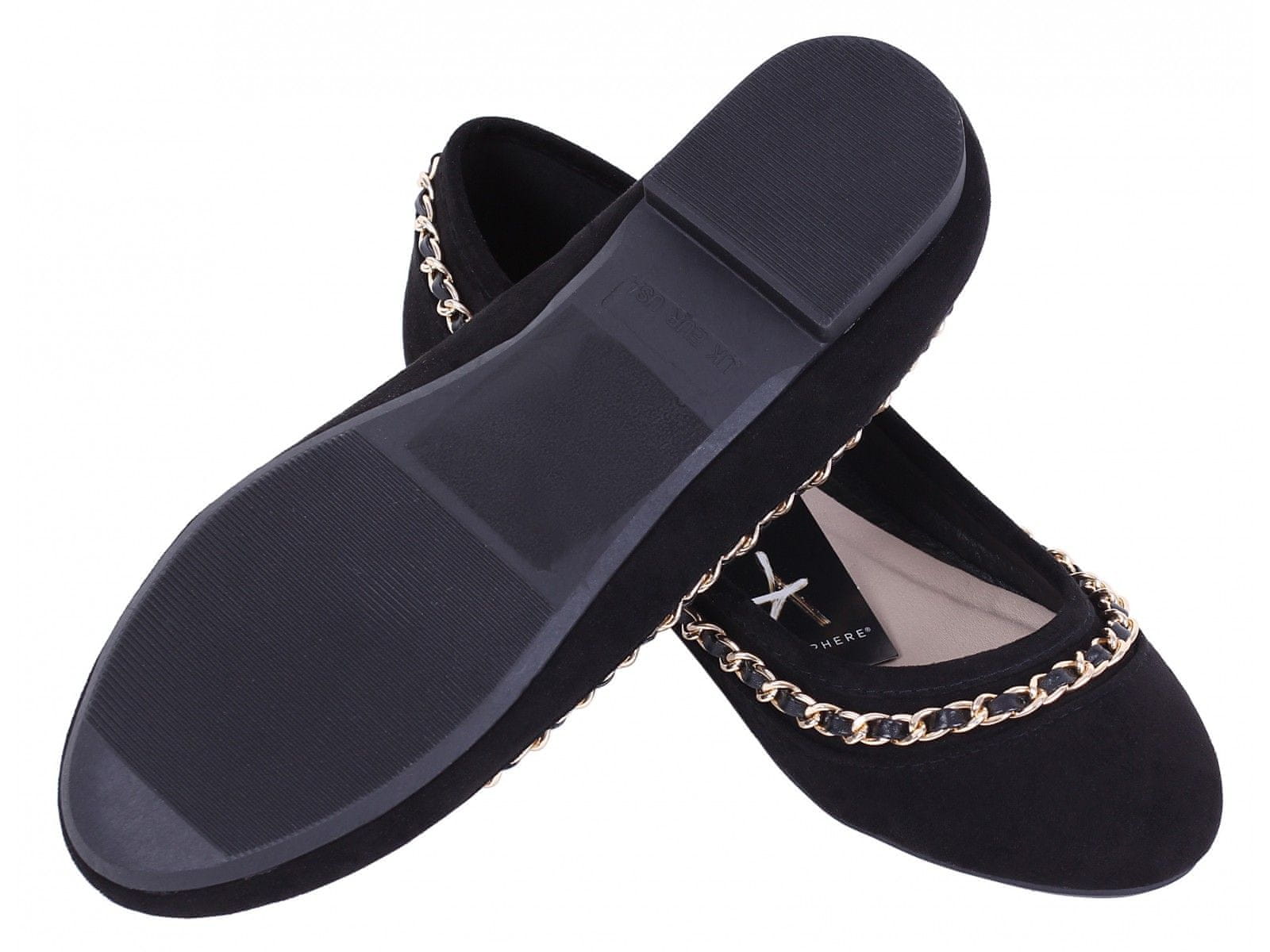 atmosphere Črne semiš balerinke z zlatim verižnim okrasjem 37 EU / 4 UK