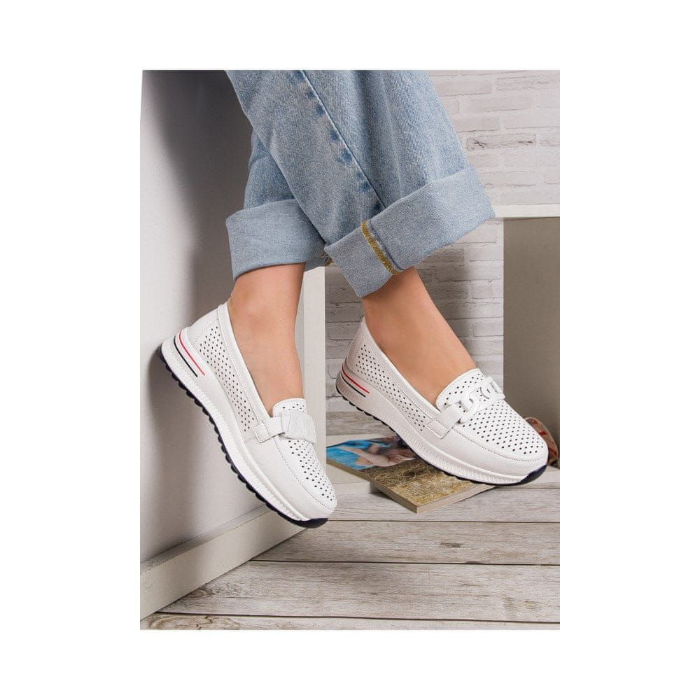 Ženski čevlji so vrsta obutve, ki nikoli ne bo šla iz mode. Ta model znamke Filippo s svojim krojem spominja na dobro znane in priljubljene čevlje. Različica tega proizvajalca je zelo originalna. Zgornji del je izdelan iz naravnega usnja v beli barvi in okrašen z originalno kovinsko zaponko, prav tako v beli barvi. Podloga je izdelana iz visokokakovostne, prijetne tkanine. Vložek iz naravnega usnja, podložen z mehko peno, zagotavlja občutek izjemnega udobja in priročnosti. Ojačan petni del preprečuje deformacijo čevlja in pomaga ohranjati stopala v pravilnem položaju. Visokokakovosten plastični podplat je zelo prožen, dobro oblikovan in znatno izboljša oprijem. Zaobljen prst zagotavlja veliko prostora in svobode za stopala. Ta kombinacija zagotavlja udobje in odličen videz. Širina čevlja – G, kakovost – I.