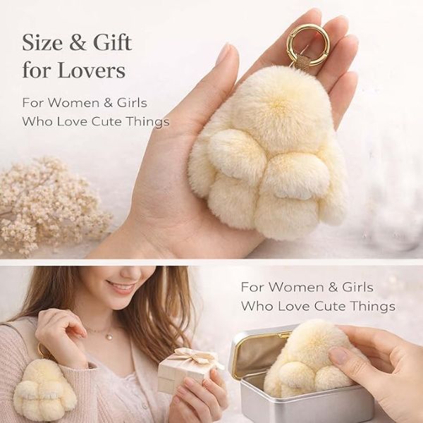 Izdelan iz izjemno mehkega umetnega krzna, ta obesek za ključe je prijeten na dotik in popoln za ljubitelje mehkih dodatkov.