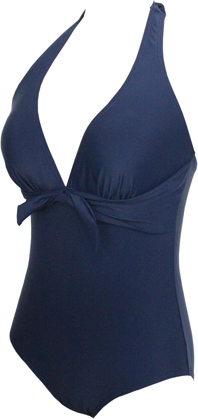 Nikcorp Enodelne ženske kopalke monokini z izrezom na trebuhu in halter ovratnikom mornarsko modre barve velikost S