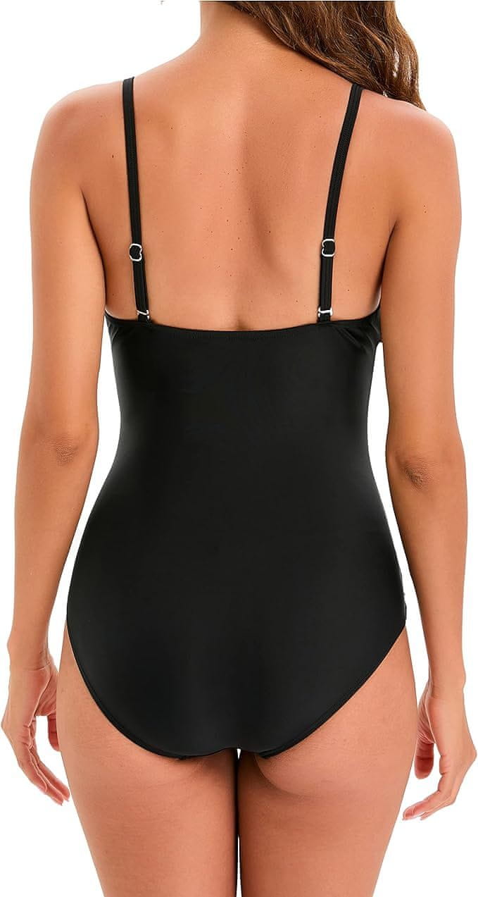 Nikcorp Ženske enodelne kopalke z visokim pasom črne barve | Oblazinjene nastavljive naramnice V-izrez velikost L