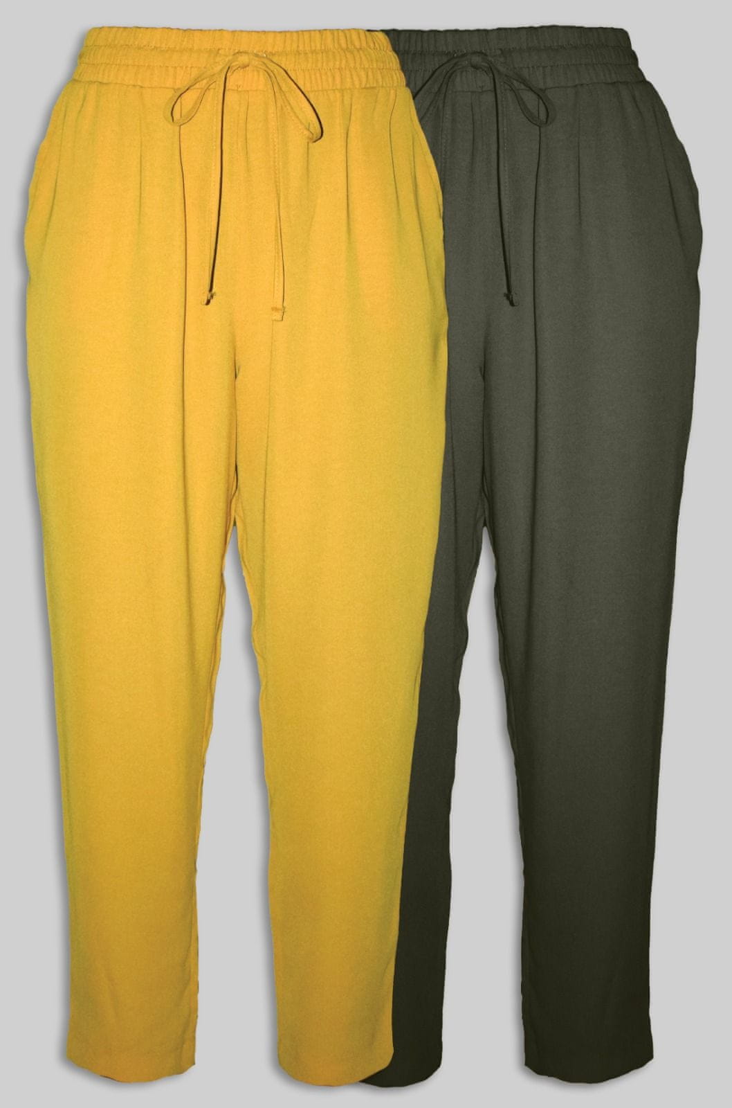 PANTONECLO Ženske hlače iz poliestra (rumena in olivno zelena) - Paket 2 kosov, 18