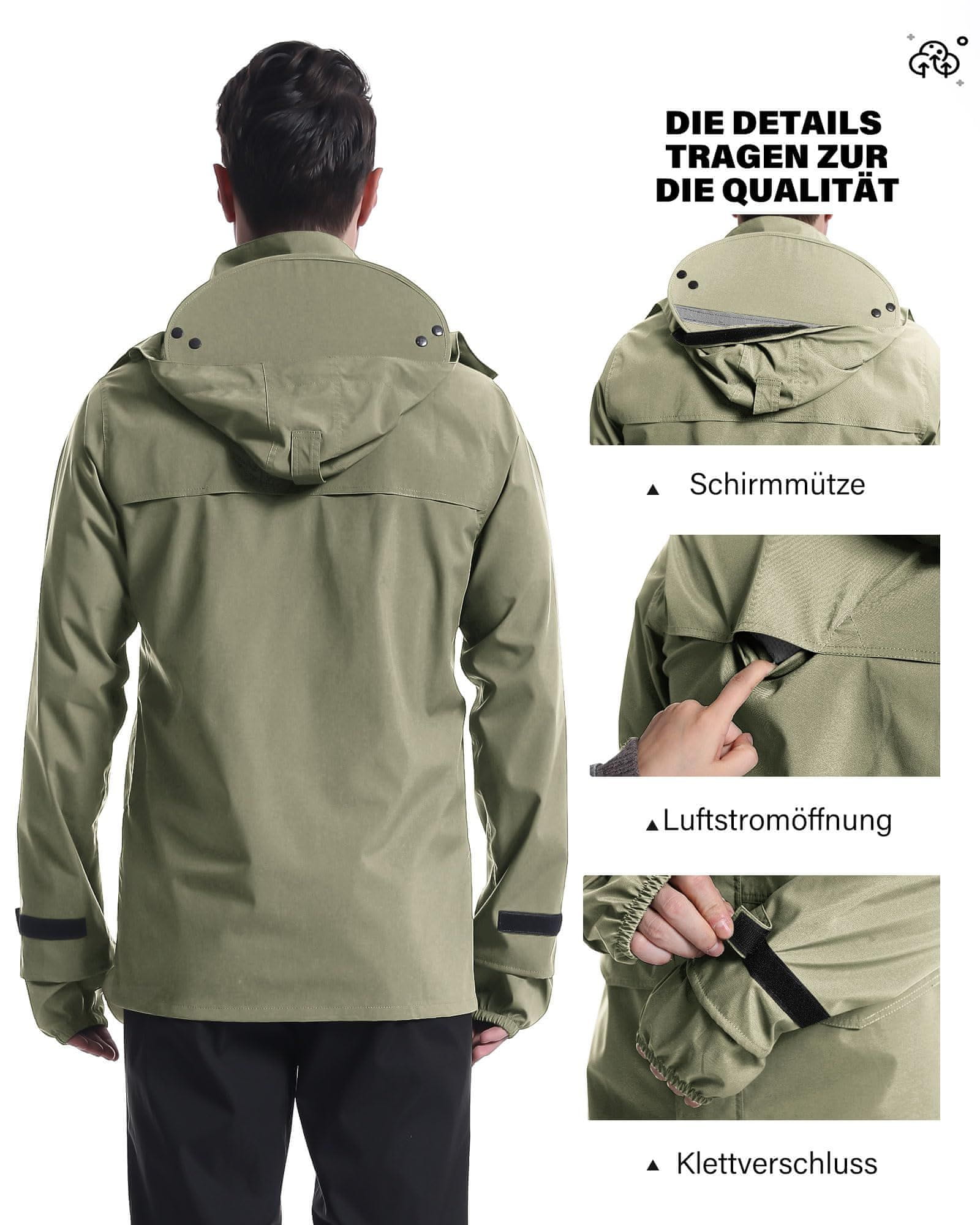 Moška dežna jakna Vodoodporna zračna s kapuco khaki L