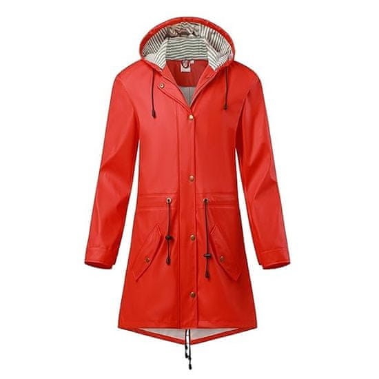 Nikcorp Ženska nepremočljiva dežna jakna s kapuco rdeča XS | Vetrovka za vse letne čase, podaljšan kroj, zaščita pred vetrom
