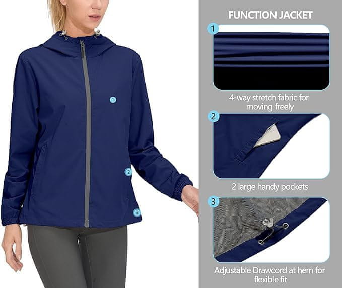 Nikcorp Ženska softshell jakna s kapuco za pohodništvo in tek | Vetrovka mornarsko modra | Velikost S