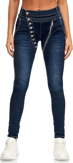 Nikcorp Ženske kavbojke oprijete temno modre, slim fit kroj z gumbi, srednje visok pas, raztegljive, velikost 48 (4XL)
