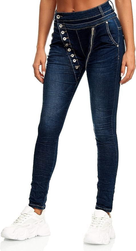 Elara Ženske kavbojke z zapenjanjem na gumbe oprijet kroj Slim fit 48 4XL