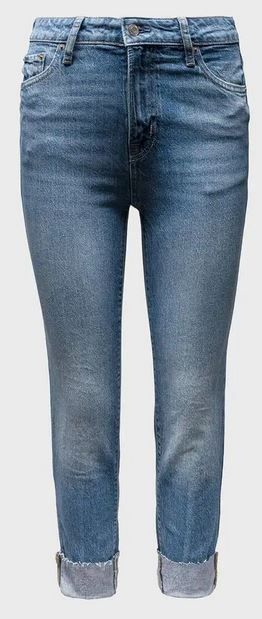 Ženske 7/8 jeans hlače v Mom jeans fitu z visokim sedlom in hlačnicam na korenček.