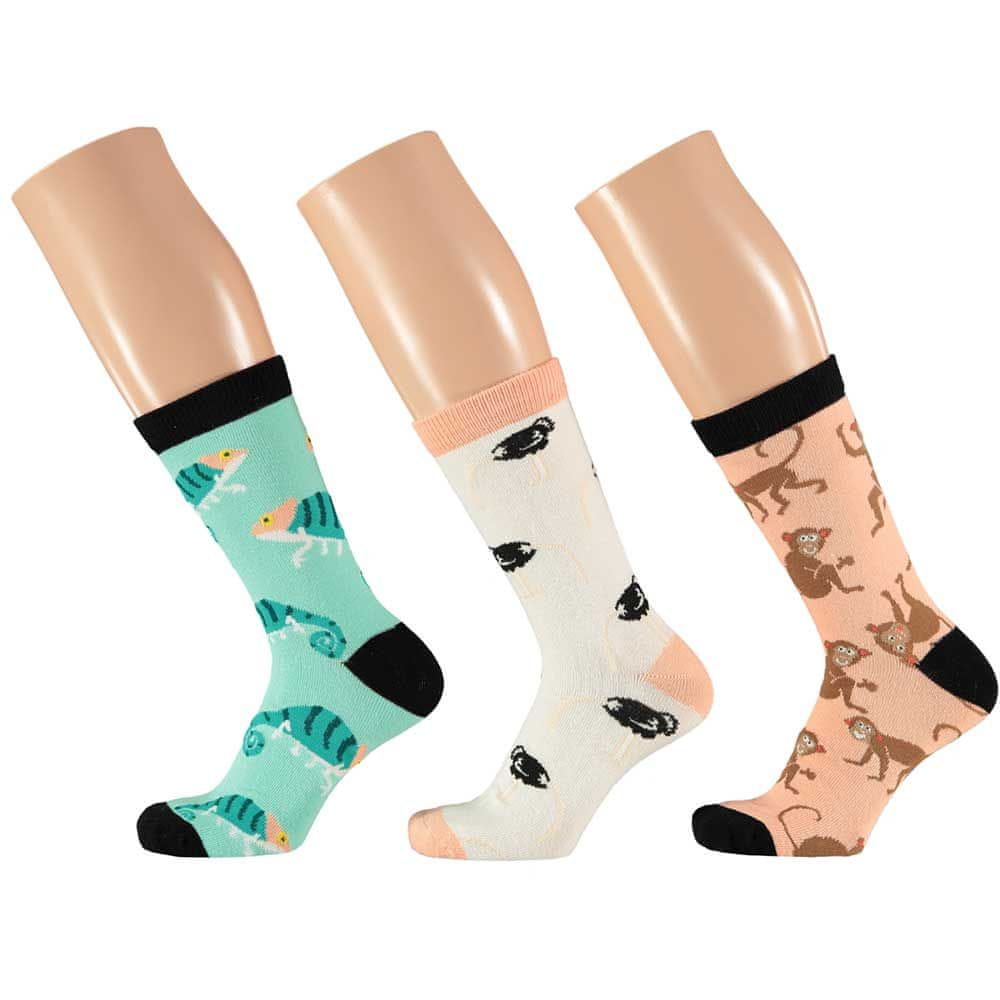 Ženske nogavice v darilni embalaži z motivi živali. Nogavice so izdelane iz visoke vsebnosti bombaža, ki so na otip zelo mehke.