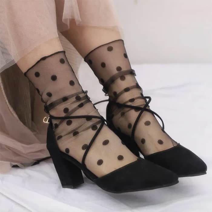 Stilsko oblikovane ženske nogavice, ki zagotavljajo udobje in toplino.