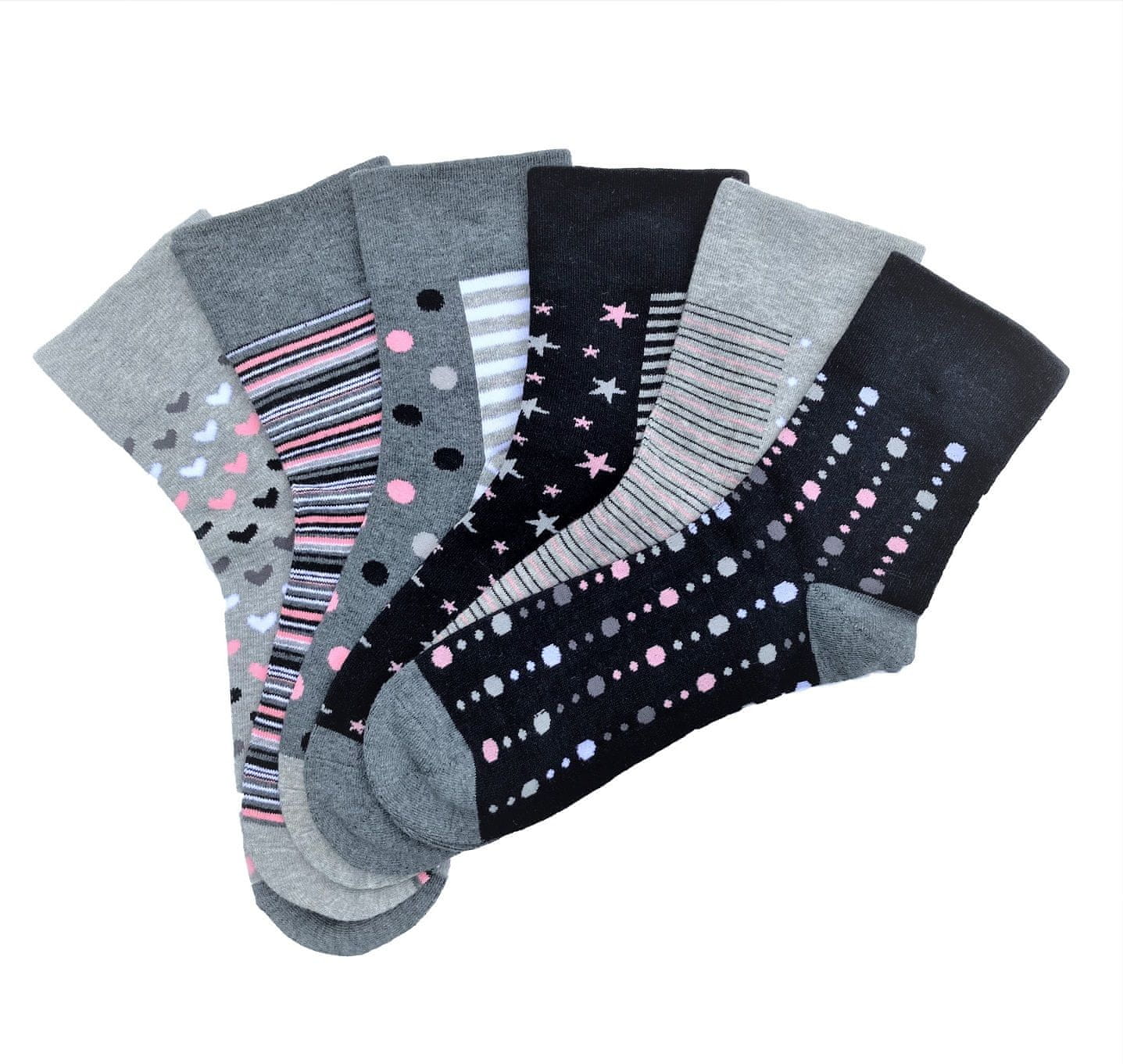 ŠTUMFKI 6 parov ženskih nogavic brez elastike, sivo-črne 38/41