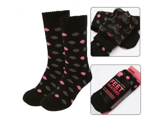 sarcia.eu Tople črne nogavice z rožnatimi in sivimi pikami, termične 37-42