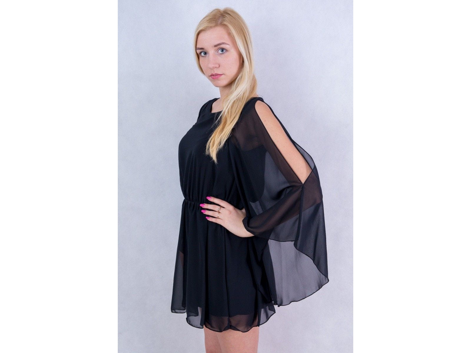 Lepa, črna, šifonska mini oblekaz dolgimi, lahkotnimi rokavi.Izdelana iz mehkega, lahkega in prijetnega materiala na dotik.Odlično se prilagaja postavi.Udobna in zelo ženstvena. Skupna dolžina za št. 34: 80 cmSkupna dolžina za št. 36 in 38: 82 cmSkupna dolžina za št. 40: 86 cm Velikosti oblačil so s Celoten opis