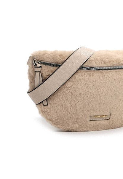 • Modna torbica okoli pasu z mehko krzneno površino v nežni bež barvi,